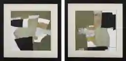The Spacerama is a set of two olive abstract prints that are double matted and framed under glass with a sleek black frame. Customer assembly is required.