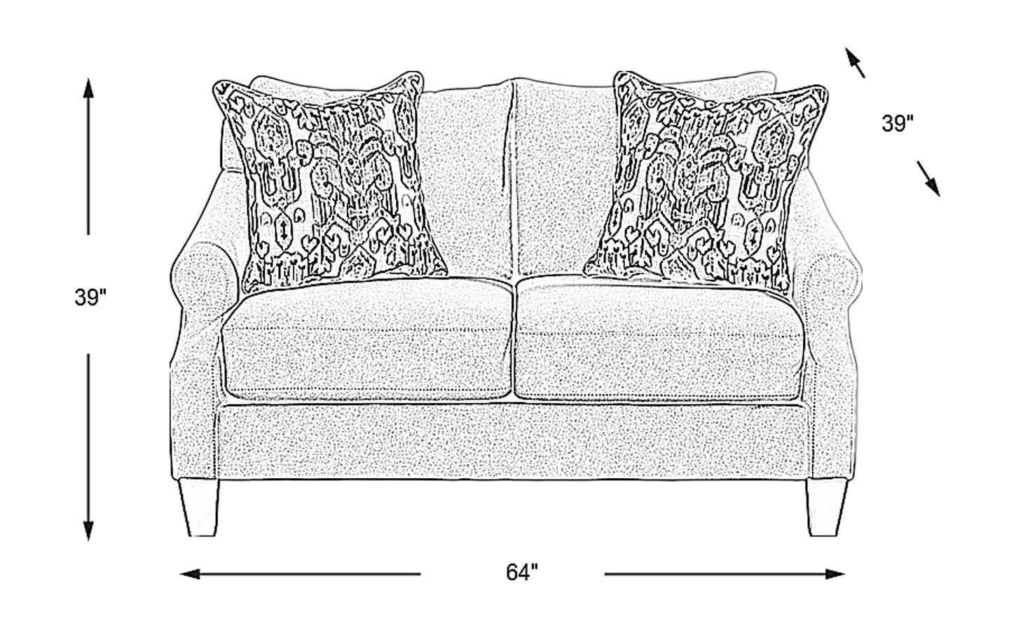 A stately yet relaxed design creates an air of inviting comfort and refined style in the Spellman loveseat. This contemporary piece features beige chenille upholstery and plush removable back and seat cushions for easy cleaning. The padded frame stands on dark tapered legs for contrast and cut-away roll arms offer an ample edge to hold when standing or sitting. Angled for a more dramatic and eye-catching look, the arms also draw attention to the top-stitching details around the arms as well as the seat cushions. Upholstery: 100% Polyester.