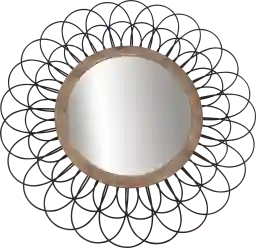 This Sperrling round wall mirror features a wire frame crafted from metal and is versatile enough to be hung in a bedroom, bathroom, and beyond. This wire frame around the mirror has a scalloped design while the mirror has a wood trim around the edges. Add this modern wall mirror to any room to brighten it up.