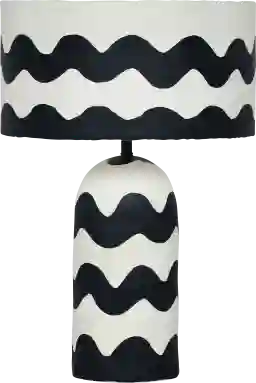 Illuminate your space with the artistic flair of the Spikerush Creek lamp. Crafted with innovative paper mache construction, the lamp boasts a captivating textural finish that adds depth and character to any room. The painterly black and white waves design further enhances its visual appeal, making it a striking and organic accent piece for your home. Place it virtually anywhere for an instant pop of style. Partial assembly may be required.