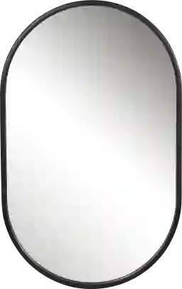 This iron Spindale oval mirror features a sleek satin black finish and linear details. May be hung horizontal or vertical. Customer assembly is required.