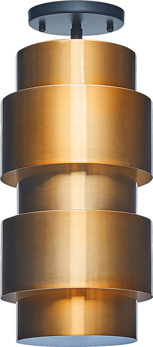 Dimensional layers and a rich hue give the Spirea Court semi-flush mount mid-century class. The stacked cylinder design crafts an industrial look, while the clean lines and polished finish provide sleek and modern design. Crafted from metal, warm antique copper shines and contrasts with the black ceiling mount. This semi-flush downlight hangs mere inches from the ceiling, shining boldly over a dining room table or kitchen island. Professional electrician recommended for installation.