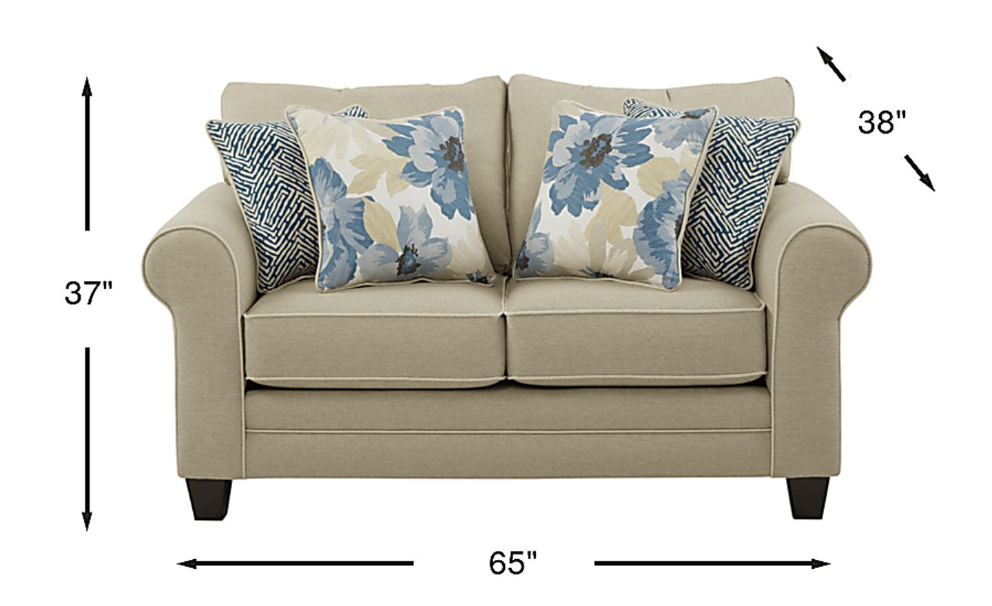 Cozy and charming, the Spring Blooms loveseat is just the place to spend a lazy afternoon. Featuring plush roll arms, this lovely seat is covered in neutral beige woven fabric, given a tailored appearance by contrasting cream welt detail. Included accent pillows showcasing contemporary geometric and oversized floral prints liven up this loveseat, while sleek tapered wood legs contribute a clean, design element. Back and seat cushions are reversible. 100% Polypropylene