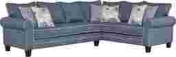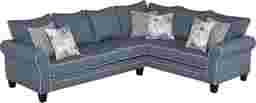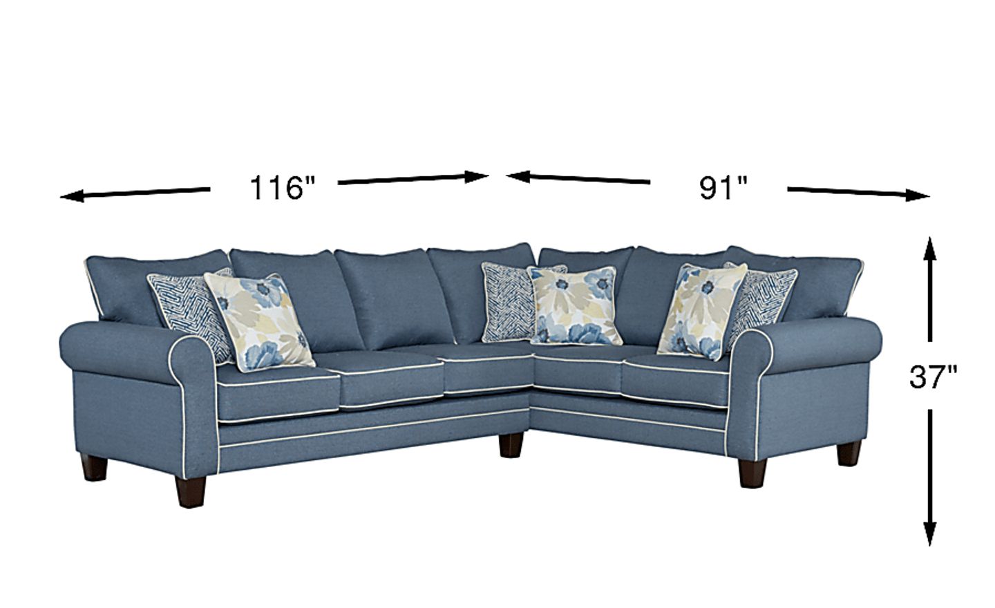 Transitional style and generous seating make the Spring Blooms sectional a wonderful choice for entertaining or everyday lounging. Upholstered in woven blue fabric with contrasting cream welt detail, this sectional is both comfortable and crisp. Six included accent pillows feature contemporary geometric and oversized floral prints in shades of blue, beige and cream for decorative flair. Back and seat cushions are reversible to extend the life of the sectional. Sleek tapered wood legs and plush roll arms round out this inviting place for up to six people. 100% Polypropylene