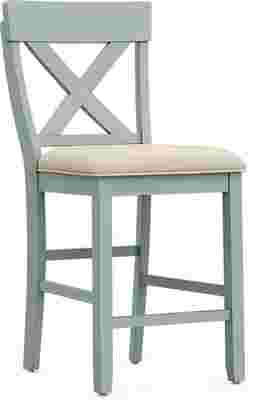 Add a serving of farmhouse charm to your casual dining area with the Spring Cottage counter height stool. From the X-back design to the padded upholstered seat to pine veneers in a fresh blue finish, this is a stool with comfortable cottage style.