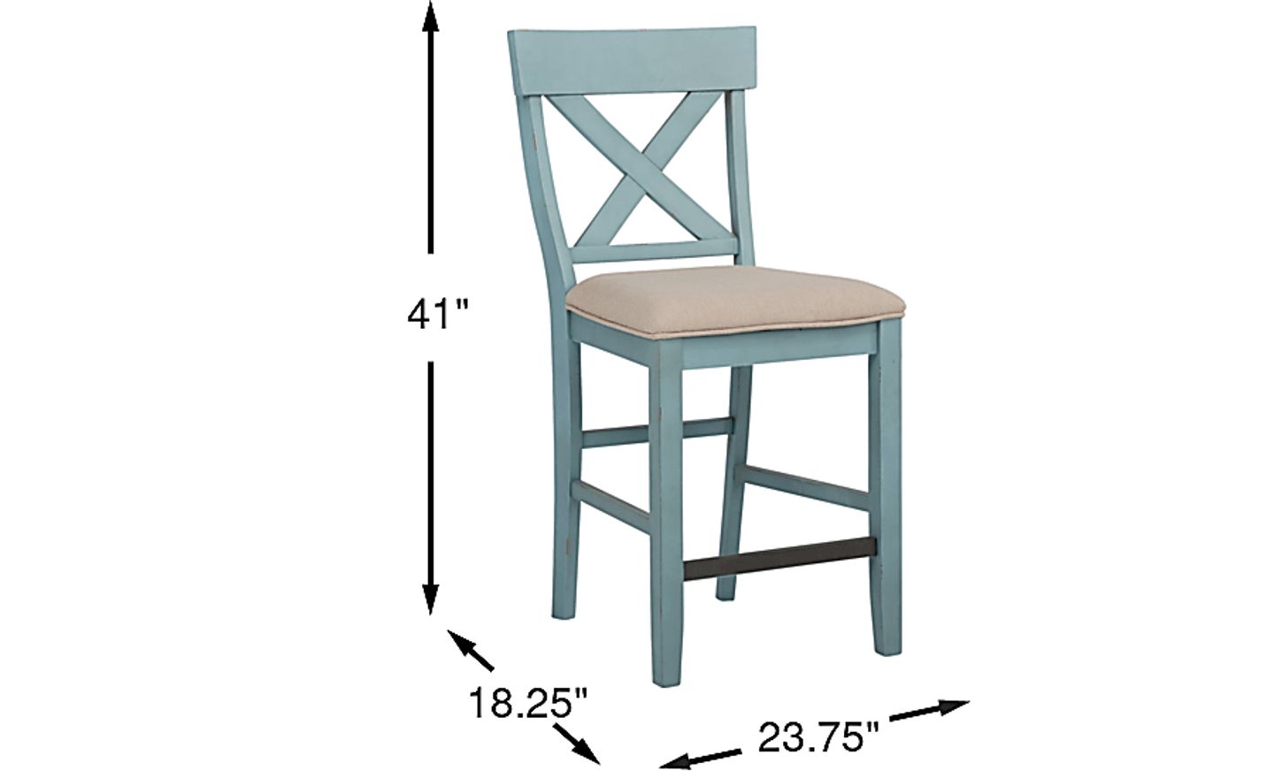 Add a serving of farmhouse charm to your casual dining area with the Spring Cottage counter height stool. From the X-back design to the padded upholstered seat to pine veneers in a fresh blue finish, this is a stool with comfortable cottage style.