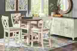 Spring Cottage White 5 Pc Round Counter Height Drop Leaf Dining Room