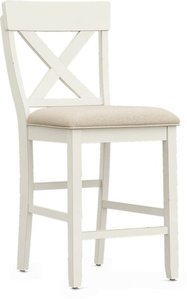 Add a serving of farmhouse charm to your casual dining area with the Spring Cottage collection. This charming dining room is rooted in cottage style and features a round two-tone finished table. The warm brown drop leaf top effortlessly makes space for any occasion, while the fresh white base provides twin slatted shelves for handy display or storage space. Matching X-back stools boast upholstered seat cushions, completing the ensemble with a cohesive look.
