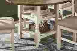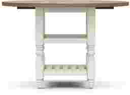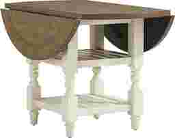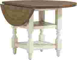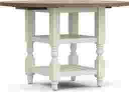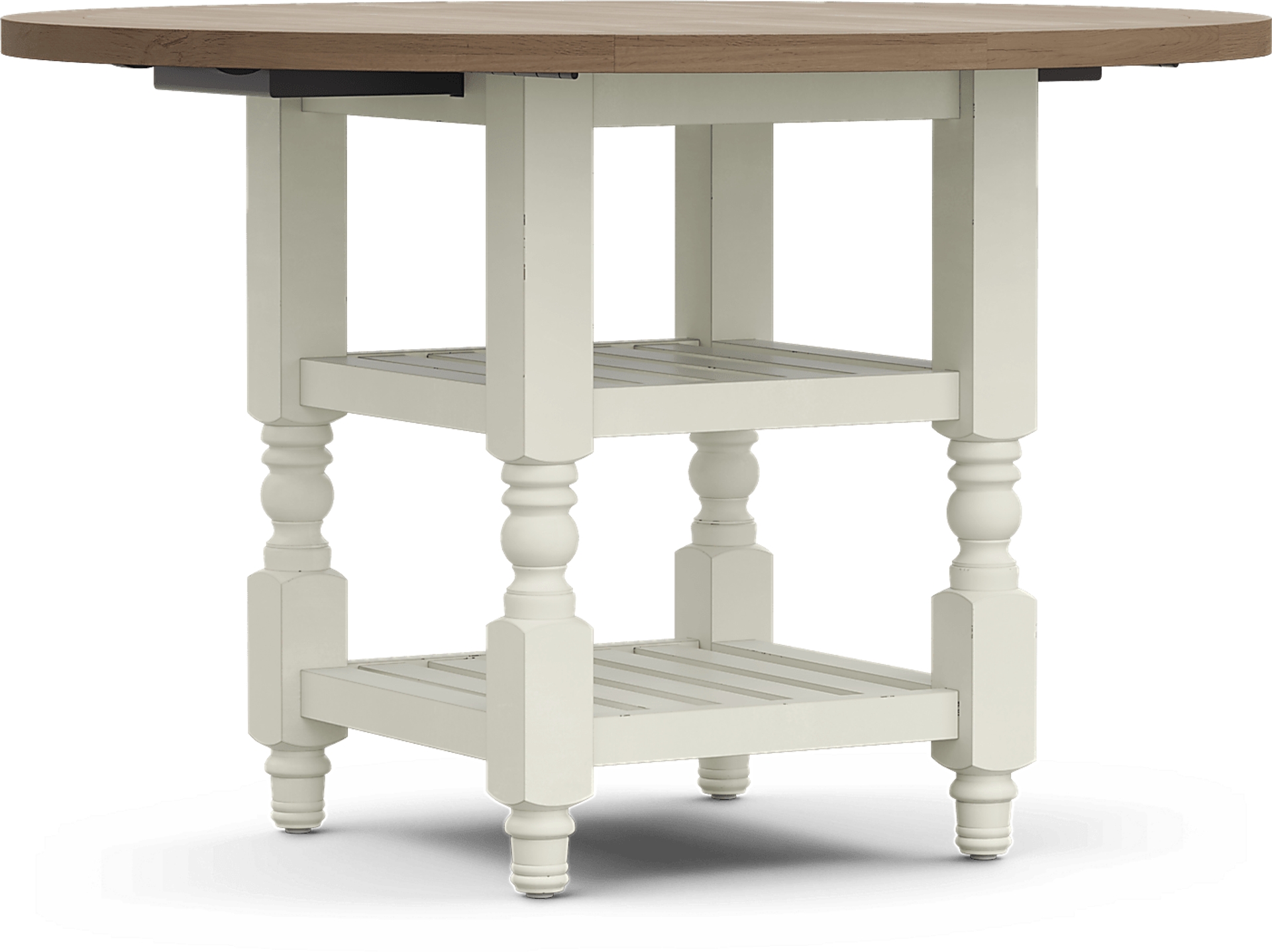 Add a serving of farmhouse charm to your casual dining area with the Spring Cottage collection. Rooted in cottage style, this dining table features a round top with a warm brown finish and a complementing base with a fresh white finish. Twin slatted shelves offer a handy place for storage or display, while the drop leaf effortlessly makes space for any occasion.