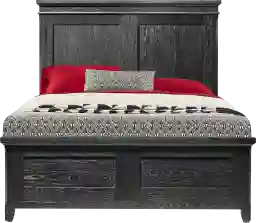 Settle gently into the timeless sanctuary of the Springville collection, embraced by the powerful calm waiting behind life's rush and noise. This handsomely detailed panel bed showcases a soothing black finish and traditional style notes like tapered square legs and subtle chamfer details. Mattress and foundation (if required) sold separately.