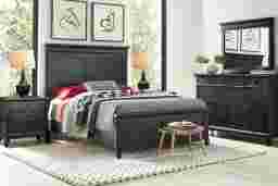 Settle gently into the timeless sanctuary of the Springville bedroom, embraced by the powerful calm waiting behind life's rush and noise. Featuring a handsomely detailed panel bed, this traditional collection showcases a soothing black finish throughout. The matching dresser offers tapered square legs and subtle chamfer details with decorative metal knobs in black. Completing the look with a functional touch, the beveled mirror mounts flawlessly to the dresser. Mattress and foundation (if required) sold separately.