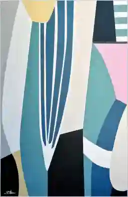 This rug features a sophisticated abstract design by artist Sylvie Hamou, including a palette of soft blue, pink, beige, black, and white. To make this a true standout piece, we suggest pairing it with neutral-toned furniture—such as a beige sofa or a black cocktail table—which allows the artist's signature and the flowing geometric shapes to take center stage. The multi-colored nature of the print makes it easy to pull accent colors for throw pillows or decorative vases, creating a cohesive and professionally curated look.