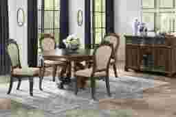 Boasting old-world grandeur with a touch of warmth and intimacy is the Stalton Estate dining room collection. Traditional in style and crafted with oak veneers, this sophisticated piece features a round tabletop with an elegant, artistically designed pedestal base that adds a touch of class to your at home dining experience.
