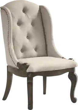Boasting old-world grandeur with a touch of warmth and intimacy is the Stalton Estate dining room collection. Traditional in style and upholstered in a soft, white polyester with a brown finish, this chair elevates the timeless look with its cabriole-style legs, ornate detailing and diamond tufted back all in a beautiful, warm brown finish, adding a touch of class to your at home dining experience.