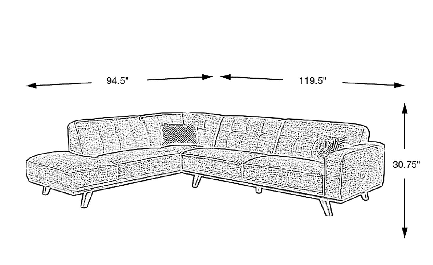 Highlighted by unassuming elegance, the Stamford Bridge sectional lights up a room with an aura that's equal parts uptown chic and downhome charm. From the right arm facing sofa to the left arm facing chaise, this piece opts for a modern style with woven denim chenille upholstery offset by a wooden base finished in a soothing natural hue. Cloud-like seats offer plush comfort and are accentuated by deep tufting and a single track arm on the sofa end of the sectional. Canted legs finish off the look with picturesque final details. Upholstery: 100% Polyester.