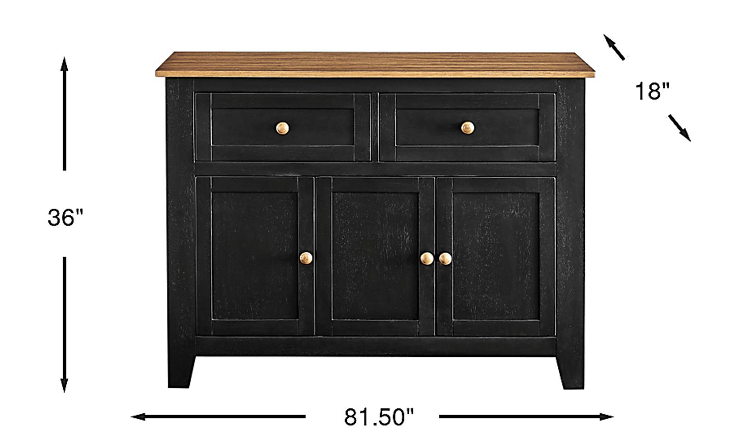 Easygoing evenings filled with shared memories and delicious dinners are second nature when the Stanford collection creates a space for connection with its dignified charm and welcoming details. This transitional server comes in a rich black finish and features a warm java brown top for a simple yet bold contrast. Two top drawers provide storage for small dining essentials, while three cabinet doors reveal spacious shelving for larger items. Circular metal knobs with a gold finish create a sophisticated final touch for the ensemble.