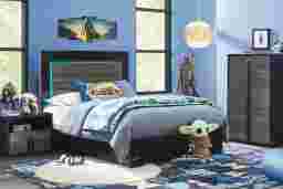 A STAR WARS™ bedroom without the ultimate sleep station is like a Jedi without a Lightsaber™, the Millennium Falcon without hyperdrive or the Death Star without. well, you know. Gone are the days of choosing between the light of day and dark of bedtime thanks to the incredible glow effects produced by the remote touch, multi-color LED lights that surround the bed's two-tone headboard that is crafted with carbonite melamine. Designed for those dreaming of adventure among the stars on the edge of another galaxy, this look features sleek, lacquered black finish that complements the galactic aesthetic perfectly. Plated with the Star Wars name, you know this is officially licensed merchandise. Mattress and foundation (if required) sold separately.