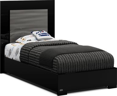 A STAR WARS™ bedroom without awesome furniture is like a Jedi without a Lightsaber™, the Millennium Falcon without hyperdrive or the Death Star without. well, you know. Sleek, lacquered black finish on the dresser and mirror play alongside carbonite melamine to complement the galactic aesthetic perfectly. The drawers are made with concealed soft close drawer glides and have oversized handles. Providing the ultimate reflective surface, the mirror's multi-tone LED light mimics the ignition of a Lightsaber™. Evoking the appearance of the Millennium Falcon's iconic cockpit soaring through the stars, the bed's bookcase headboard has multi-color LED light strips powered by Nanoleaf's inventive color effects. These panels can be synced with smart phones and devices to create a light spectacle that plays in time with the music and rhythm of sounds. USB-A and USB-C charging ports on the headboard help juice up some of your favorite electronic devices for even more convenience.