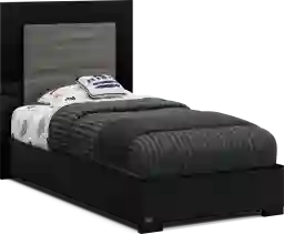A STAR WARS™ bedroom without awesome furniture is like a Jedi without a Lightsaber™, the Millennium Falcon without hyperdrive or the Death Star without. well, you know. Incredible glow effects are produced by the remote touch, multi-color LED lights that surround the twin bed's two-tone headboard. Sleek, lacquered black finish on each piece plays alongside carbonite melamine to complement the galactic aesthetic perfectly. The dresser drawers are made with concealed soft close drawer glides and feature oversized vertical handle pulls. Providing the ultimate reflective surface for light and shadow to collide, the mirror's multi-tone LED light mimics the iconic ignition of a Lightsaber™ with the flip of its on/off switch. All pieces are plated with the Star Wars name, letting you know this is officially licensed merchandise. Mattress and foundation (if required) sold separately.