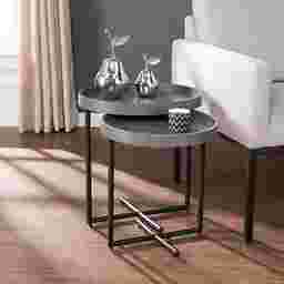 Indulge your home with this 2pc Starfinder nesting table set. Washed gray tabletops and black metal frames create relaxed modern farmhouse style. Add this set of gray tables in your living room for double the storage, or place in the foyer as a catch all combo. Satisfy your style needs with this set of round nesting tables. Customer assembly is required.