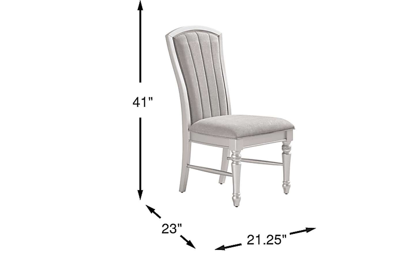 Get a taste of Hollywood glamour with the Starlet Lane side chair. This piece is crafted of hardwood solids in a silver finish and features a seat upholstered with light gray fabric. Channel detailing on the flare back offers a hint of sophistication while shimmering accents on the elegantly turned legs give the look a stunning final polish.