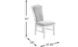 Get a taste of Hollywood glamour with the Starlet Lane side chair. This piece is crafted of hardwood solids in a white finish and features a seat upholstered with gray fabric. Channel detailing on the flare back offers a hint of sophistication while shimmering accents on the elegantly turned legs give the look a stunning final polish.