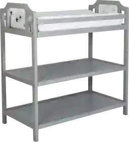 Complete your baby's nursery with the Starry Grove light gray changing table. The Starry Grove changing table is the perfect complement to the matching crib. It features a surrounding safety rail to secure your baby in place as you change and dress them with ease, while also providing ample shelf storage underneath to conveniently hold all your baby's essentials. Changing pad not included. Crib sold separately. Customer assembly required.