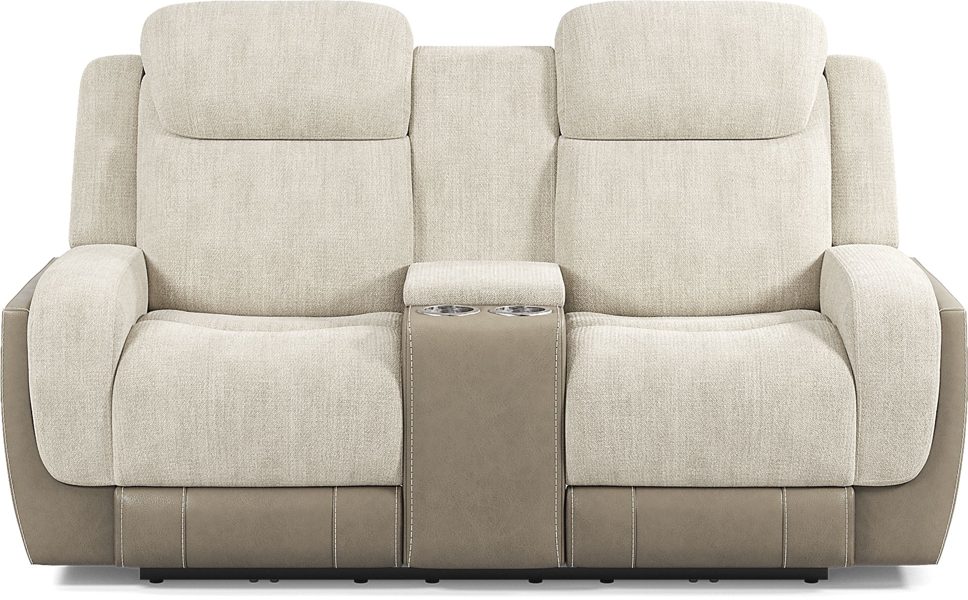 Complete your home with the State Street dual power reclining loveseat. Topped in soft chenille fabric, this piece offers incredibly soft seating perfect two. Its dual power with Zero Gravity adjustability grants customized comfort and relieves pressure on your neck and back. Stainless steel cupholders and console storage provide extra amenities as the two-tone beige color completes the contemporary look. Upholstery: 100% Polyester.