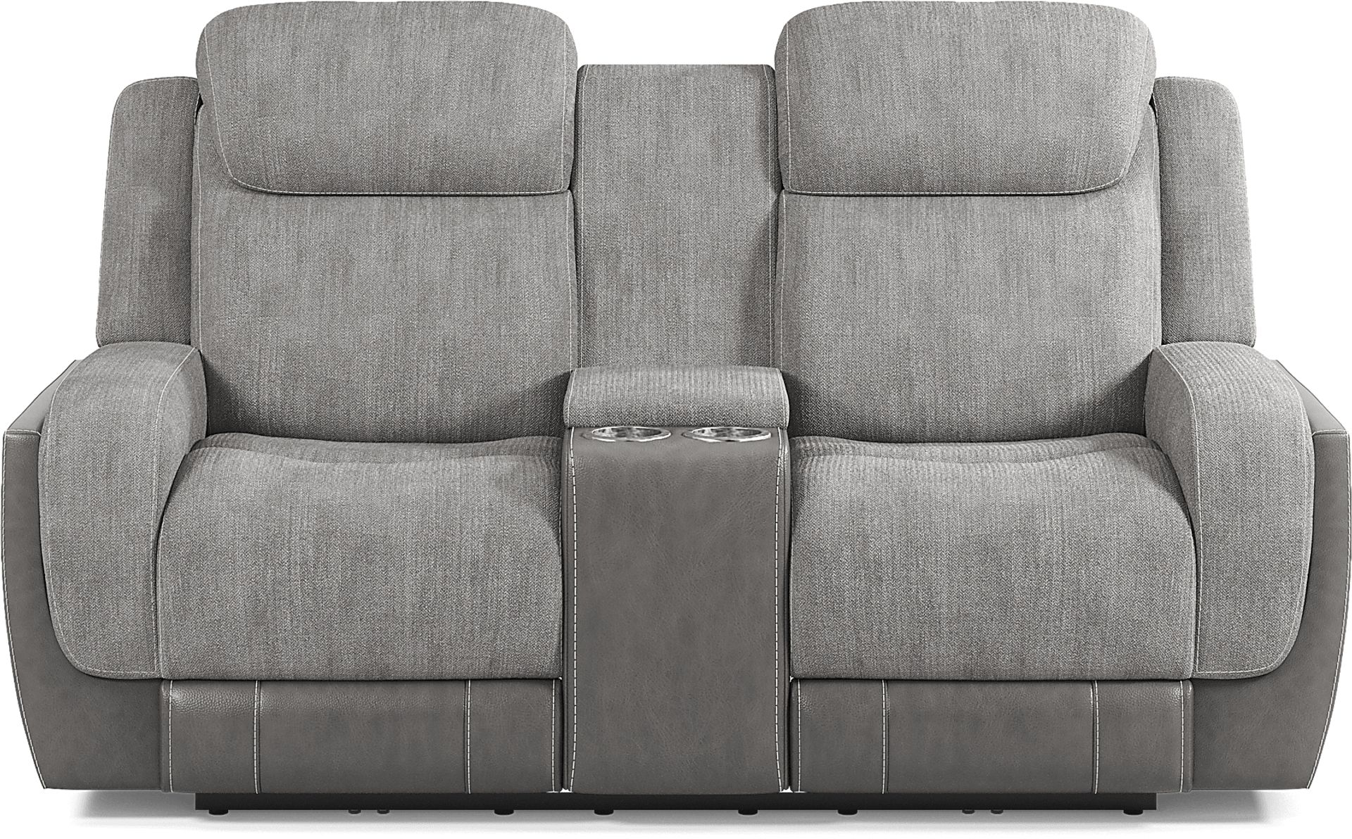 Complete your home with the State Street dual power reclining loveseat. Topped in soft chenille fabric, this piece offers incredibly soft seating perfect two. Its dual power with Zero Gravity adjustability grants customized comfort and relieves pressure on your neck and back. Stainless steel cupholders and console storage provide extra amenities as the two-tone gray color completes the contemporary look. Upholstery:100% Polyester.
