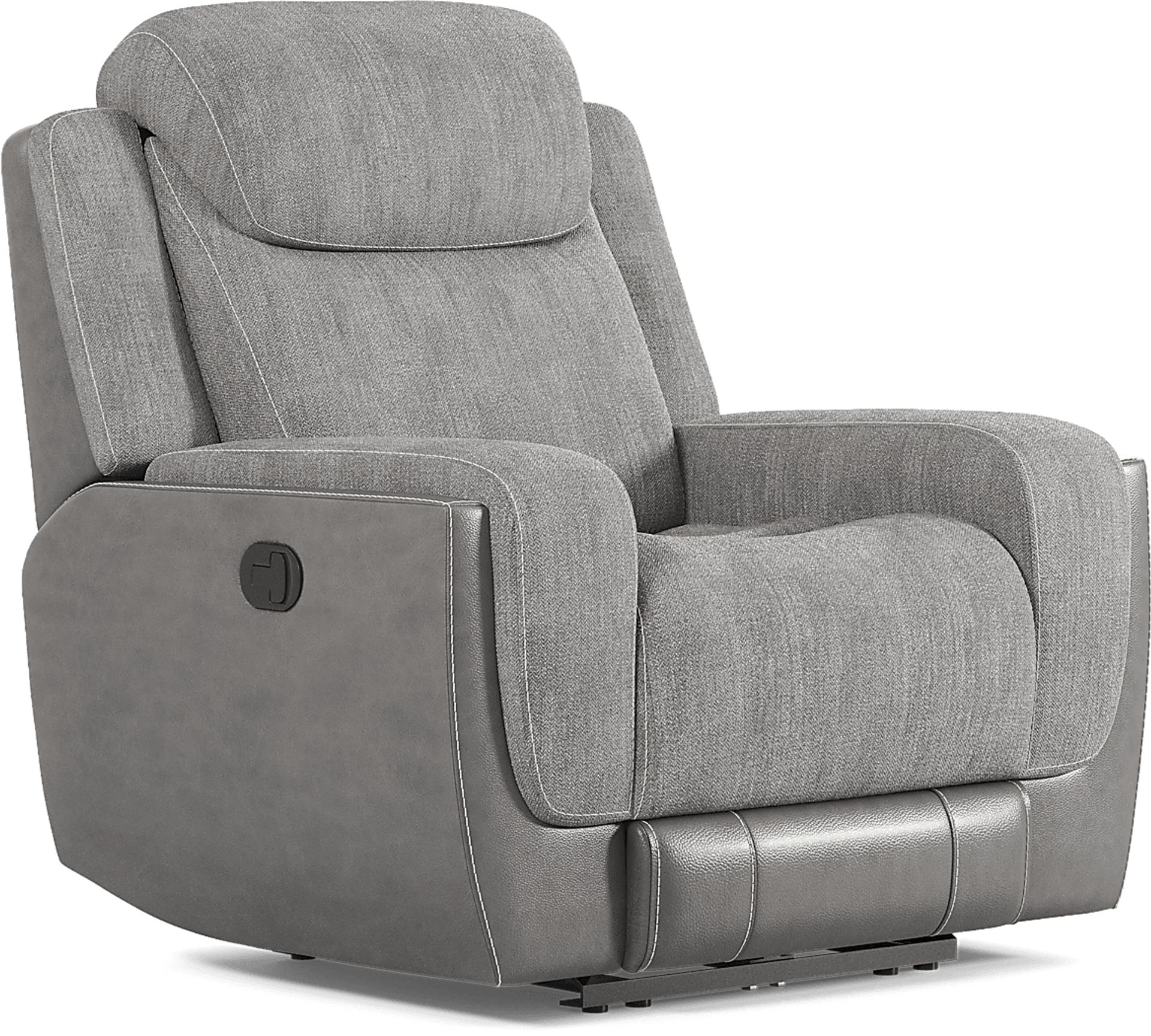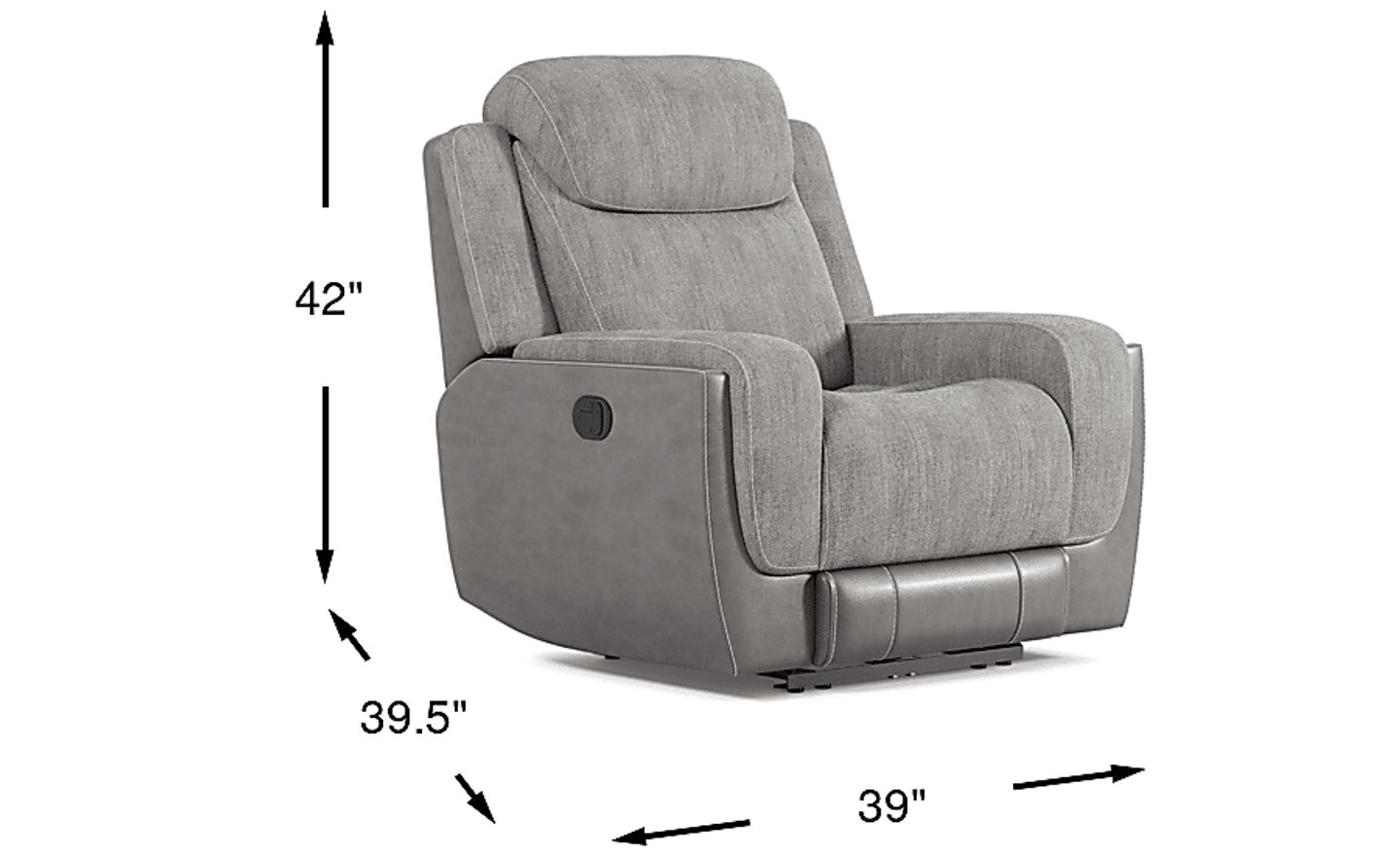 Boasting style and comfort, the State Street recliner enhances the lounging experience like no other. Topped in soft chenille fabric, this piece offers incredibly soft seating perfect for one. The two-tone gray color completes the contemporary look. Upholstery:100% Polyester.