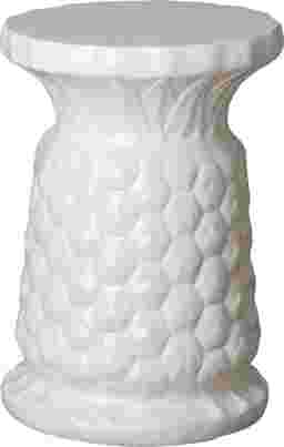 The Staunton stool is finished in a ceramic fired glazed white featuring a pineapple print is a beautiful addition to your patio or porch. It can be used inside or outside as a side table or extra seat.