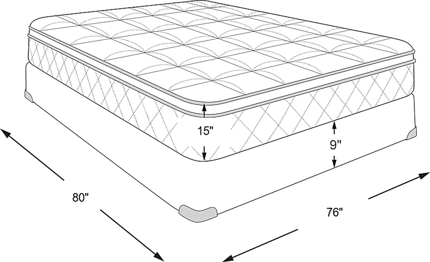 mattress: 80"l x 76"w x 15"h, foundation: 9"h