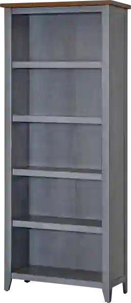 The dusty blue finish and rustic, lightly-weathered aesthetic make this bookcase a popular choice for coastal-inspired interiors or "shabby chic" decors. The design properties are intended to be durable for standard indoor home and office settings; however, as with all wood furniture, maintaining a stable indoor humidity level will best protect the wood tops from natural expansion or contraction over time.