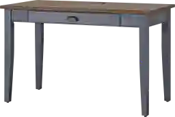 This desk features a distinctive lightly-weathered dusty blue finish that evokes a soothing, rustic-modern presence. This specific finish provides a soft pop of color that pairs beautifully with natural tones, while the "weathered" property helps to camouflage minor daily wear and tear better than high-gloss or solid-color surfaces.