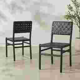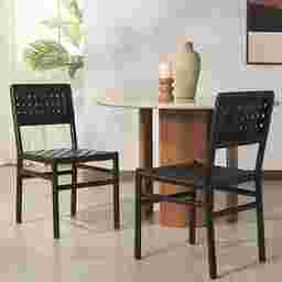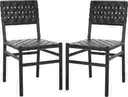 This Stelbury black dining chair set blends modern edge with timeless craftsmanship. Its sleek black finish and hand-woven top grain leather offer a bold yet elegant look, while the solid Sungkay wood frame ensures lasting durability. A statement piece that delivers both comfort and style. Customer assembly required.