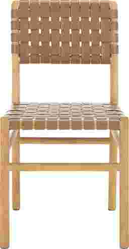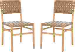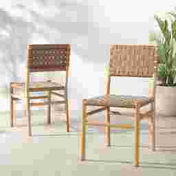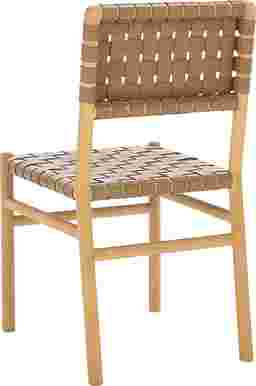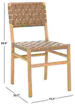 This Stelbury brown dining chair set blends modern edge with timeless craftsmanship. It's sleek natural finish and hand-woven top grain leather offer a bold yet elegant look, while the solid Sungkay wood frame ensures lasting durability. A statement piece that delivers both comfort and style. Customer assembly required.