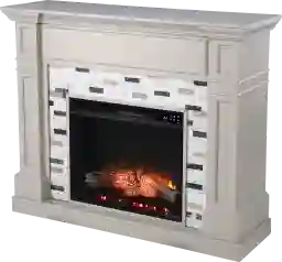 Warm up your space with contemporary design when you bring home this Stembridge IV freestanding electric fireplace. Classic woodwork creates a cozy fireplace look, while the sleek marble surround adds a clean, modern feel to your living room or dining area. Realistic faux fire logs and flickering flames bring ambiance to your space, working with or without heat for year-round enjoyment. Curl up and unwind in cozy comfort when you add this marble fireplace to your contemporary decor. Customer assembly is required.