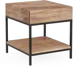 A stylish complement to any seating area, the Stenlay end table showcases clean lines and earthy appeal. This table comes in a natural brown finish that evokes rustic style. Metal legs lend an industrial touch. Plus, a lower shelf provides additional space to display your favorite books, photos or decor.