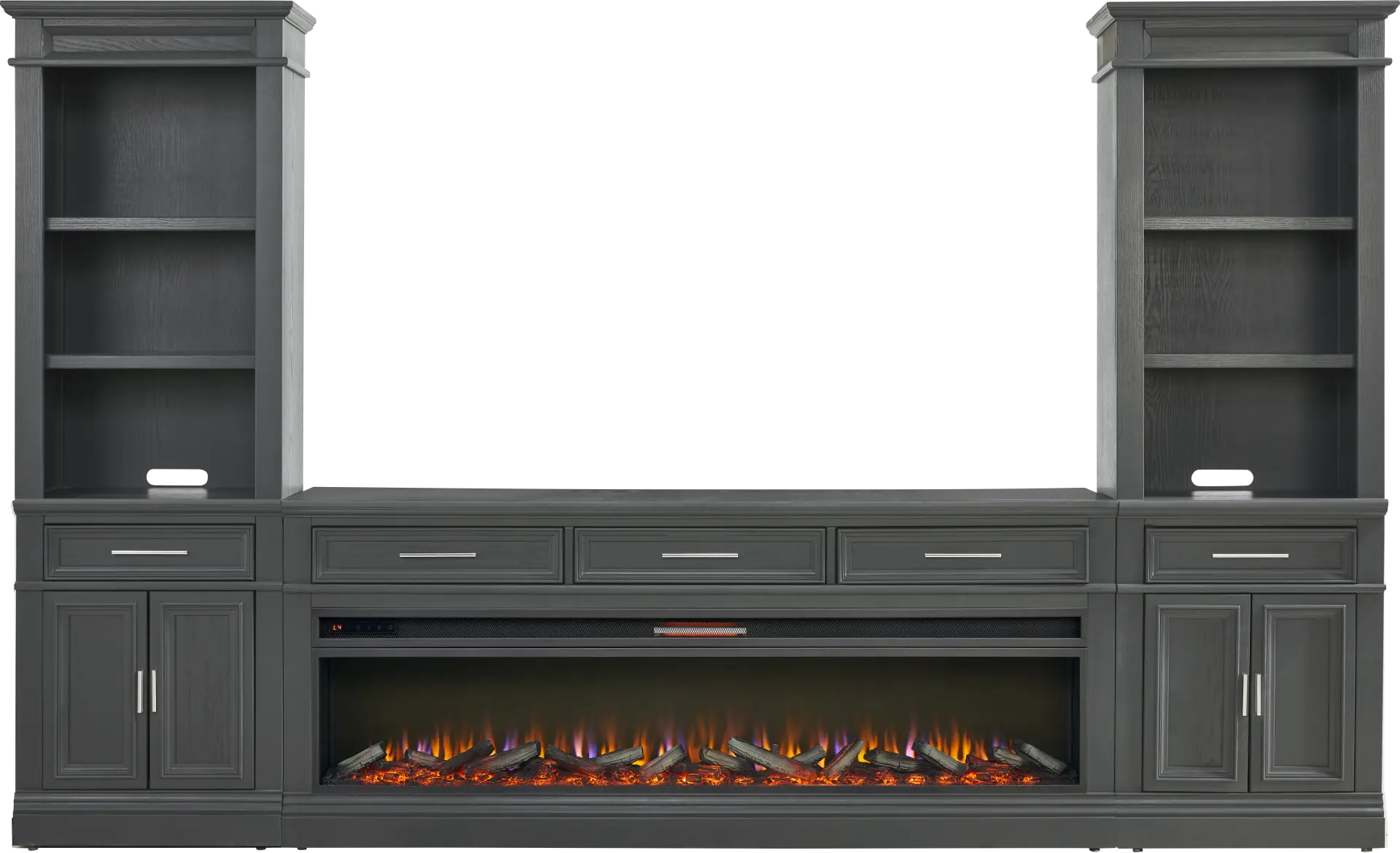 Stephenson Dark Gray 4 Pc Wall Unit With 78 In. Console And Electric Log Fireplace