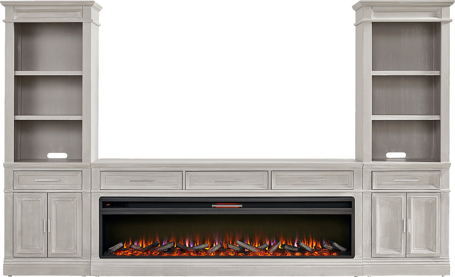 Stephenson Light Gray 4 Pc Wall Unit With 78 In. Console And Electric Log Fireplace