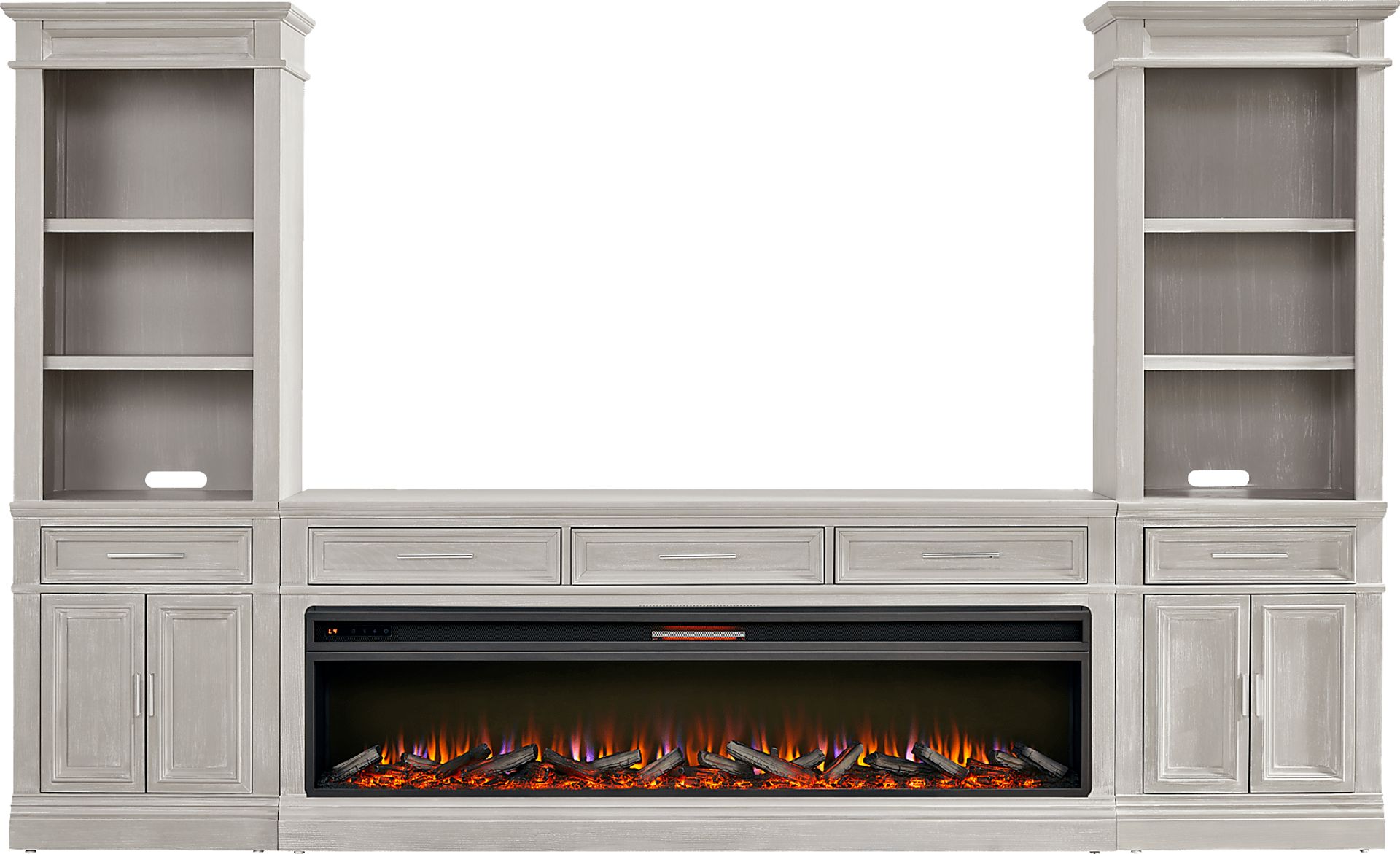 Stephenson Light Gray 4 Pc Wall Unit With 78 In. Console And Electric Log Fireplace