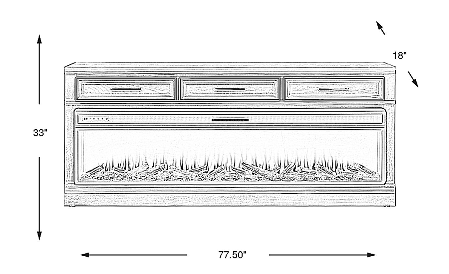 77.50"w x 18.00"d x 33.00"h