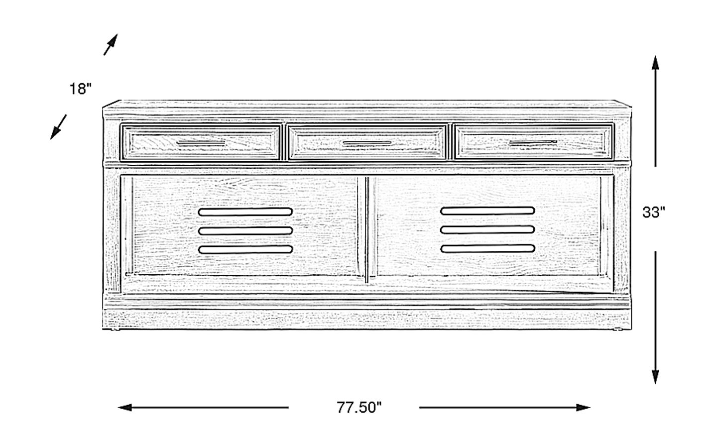 77.50"w x 18.00"d x 33.00"h