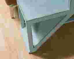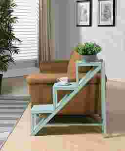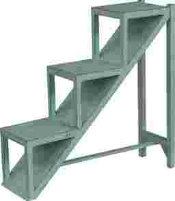 A contemporary design combines with a rustic weathered blue finish and creates a fresh storage solution in this three tier library display Stepup accent table. The shape allows for many storage options, while it also serves as a sculptural focal point in any space.