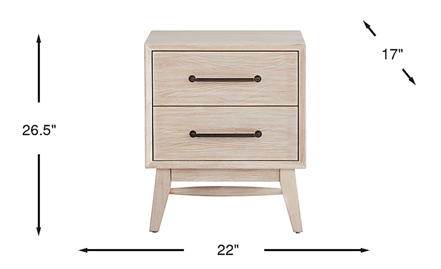 This nightstand stands at 26.5 inches tall, which is an ideal height for the majority of modern standard and pillow-top mattresses. Ideally, a nightstand should be level with or a few inches above the top of your mattress to ensure easy access to items while lying down. Its 22-inch width also provides a balanced silhouette when paired with queen or king-sized beds.