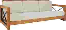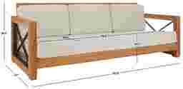 The Stetrood Cay outdoor teak patio sofa is a perfect blend of art and comfort. The sofa's teak frame is seamlessly juxtaposed with X-detail black stainless steel sides and plush beige-colored cushions. The negative space adds allure to the classic profile of the sofa, making it the pinnacle of high-style outdoor decor. The sofa can seat up to three people with ease and sophistication. Customer assembly required.