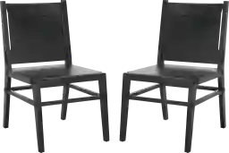 This Stetsen black side chair set brings luxury and sophistication to your dining space. Crafted from sturdy mindi wood and upholstered in rich black top grain leather, it features elegant brass accents for a refined finish. A perfect blend of comfort, durability, and style. Customer assembly required.