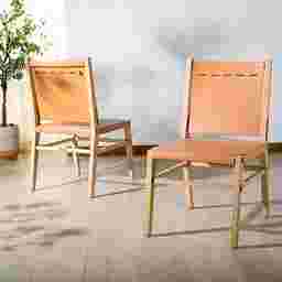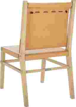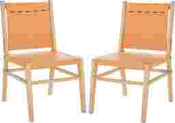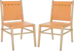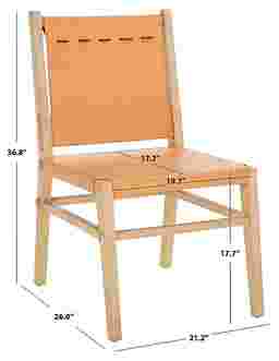 From the Stetsen Collection, this Tan chair set brings luxury and sophistication to your dining space. Crafted from sturdy mindi wood and upholstered in rich black top grain leather, it features elegant brass accents for a refined finish. A perfect blend of comfort, durability, and style. Customer assembly required.