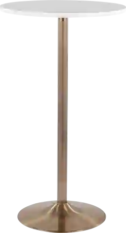 Create a glam atmosphere in your home with the contemporary design of the Stillforrest adjustable dining table. This stylish table has a metal base with a gold finish and a wood top that adds sleek contrast. The Stillforrest table is adjustable from 30 inch dining height or 42 inch bar height. Customer assembly is required.