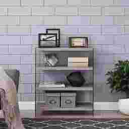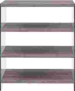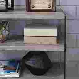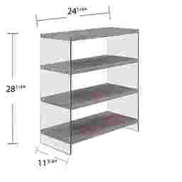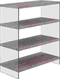 A shelf for all, open, three-tier Stoneler shelving with glass sides makes room for your accent items and picture frames in the living room. Soft natural creates a blendable look to add storage to any pre-existing collection. Adorn your open concept living space with this contemporary style shelf. Customer assembly is required. Customer assembly is required.